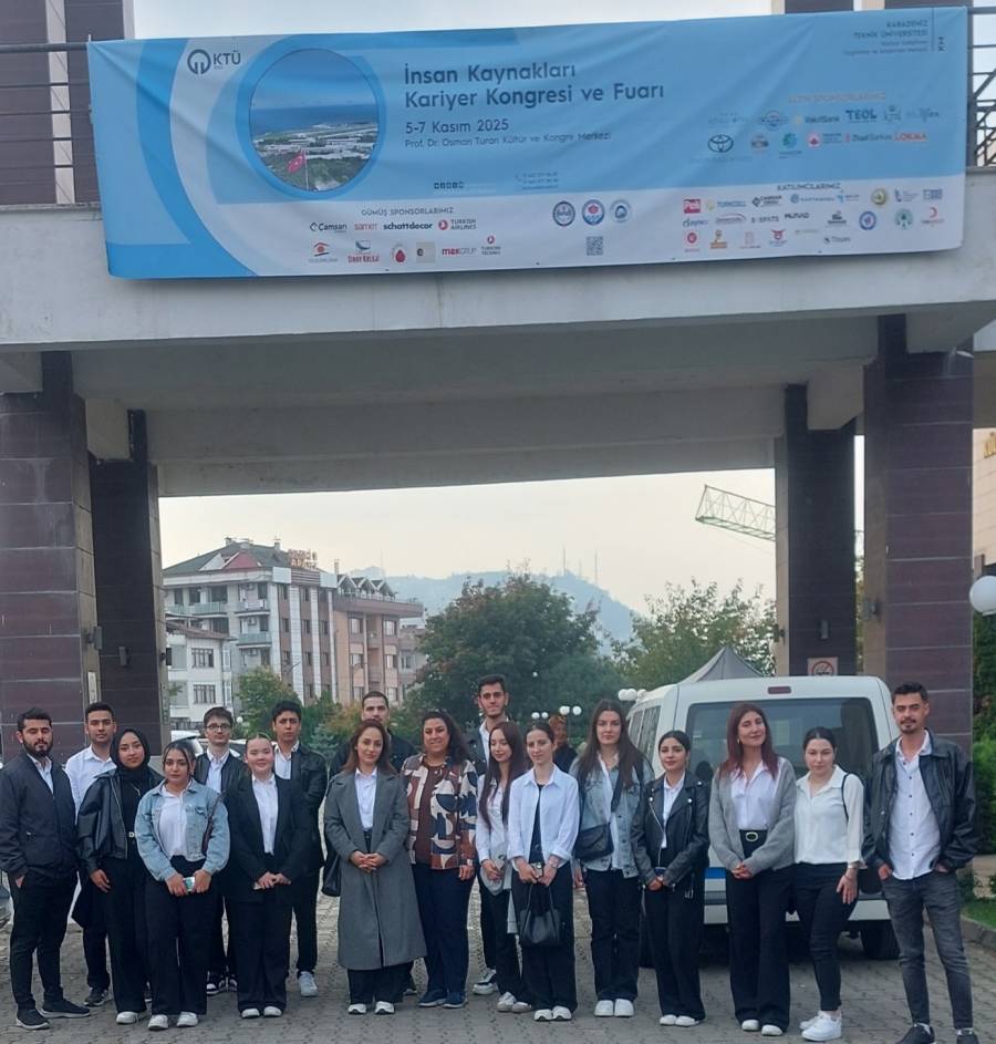 Otel, Lokanta ve İkram Hizmetleri Bölümü, Turizm ve Otel İşletmeciliği Programı öğrencileri, 7 Kasım 2025 tarihinde Bölüm Başkanı Öğr. Gör. Dr. Gülsüm DEMİR KAYA eşliğinde “İnsan Kaynakları-Kariyer (İKAKON) Kongresine katılım sağlamışlardır. Kongreye katılan öğrenciler bilimsel sunumlar ve panel programları ile kariyer hedeflerine yönelik yeni bakış açıları kazanma imkânı elde ederken, eş zamanlı gerçekleştirilen kariyer fuarı ile sektörel bağlantılar kurma fırsatı yakalamışlardır.