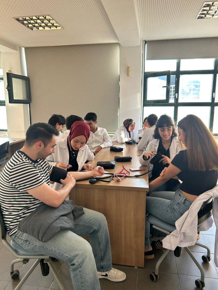 Etkinlik kapsamında, öğrencilere yönelik temel klinik beceriler üzerine bilgilendirme ve uygulama çalışmaları gerçekleştirildi. Dört istasyondan oluşan eğitimde, katılımcılara bandaj uygulama, damar yolu açma, intramüsküler enjeksiyon ve tansiyon ölçme hakkında teorik bilgiler aktarıldı ve ardından her öğrenci bu becerileri uygulamalı olarak deneyimleme fırsatı buldu.