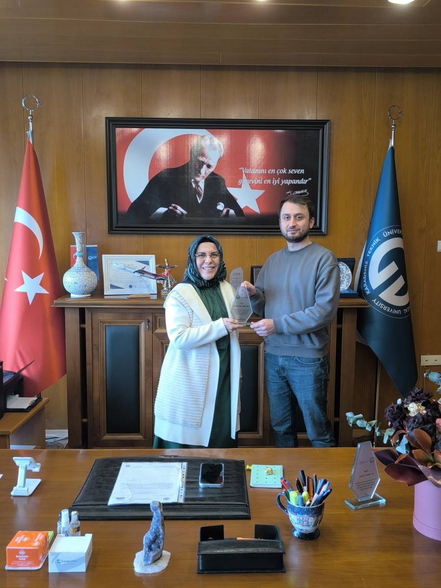Fakültemizde uzmanlık eğitimlerini tamamlayan Çocuk Sağlığı ve Hastalıkları Anabilim Dalından Çocuk Endokrinoloji Yan Dal Uzm. Dr. Hakan KARDEŞ, Göz Hastalıkları Anabilim Dalından Uzm. Dr. İrem Berfu BOZAT, Aile Hekimliği Anabilim Dalından Uzm. Dr. Kübra GÜNEŞ, Uzm. Dr. Can Deniz ATALAY ve Uzm. Dr. Erkut İhsan Şamil ARICI'ya Dekanımız Prof. Dr. Sevdegül AYDIN MUNGAN tarafından plaketleri takdim edildi.
