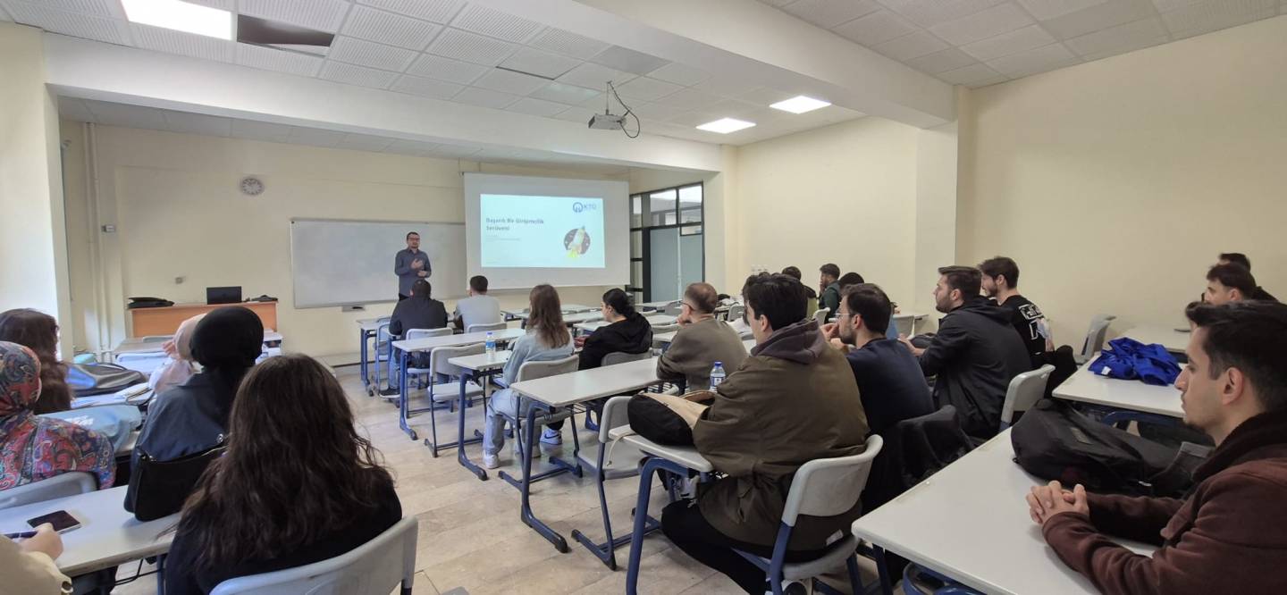 KTÜ TTO Proje Uzmanı Eren Yılmaz tarafından bölümümüz öğrencilerine TÜBİTAK Girişimcilik Destekleri, 2209-A Üniversite Öğrencileri Araştırma Projeleri ve 2209-B Sanayiye Yönelik Projeler hakkında bilgilendirme sunumu gerçekleştirildi.