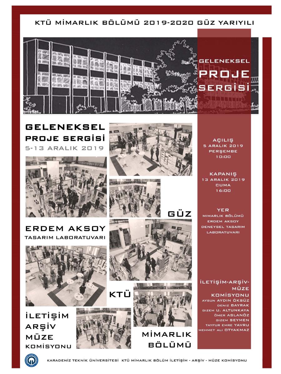 Her dönem Karadeniz Teknik Üniversitesi Mimarlık Bölümünde gerçekleştirilen "GELENEKSEL PROJE SERGİSİ" 5 Aralık-13 Aralık 2019 tarihleri arasında Mimarlık Bölümü Erdem Aksoy Deneysel Tasarım Laboratuvarında sergilenecektir. Sergi açılış seremonisi 5 Aralık Perşembe günü saat 10:00'da sergi mekanında yapılacaktır. İlgililere duyurulur...