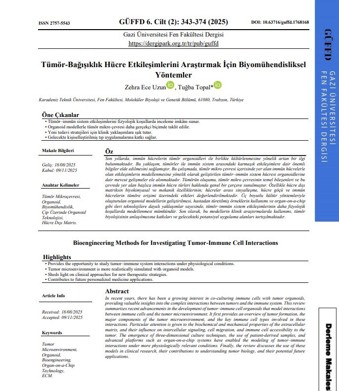 Bölümümüz mezunlarından Zehra Ece Uzun'un Dr. Öğr. Üyesi Tuğba Topal danışmanlığında yürüttüğü lisans bitirme çalışması akademik dergide araştırma makalesi olarak yayınlandı