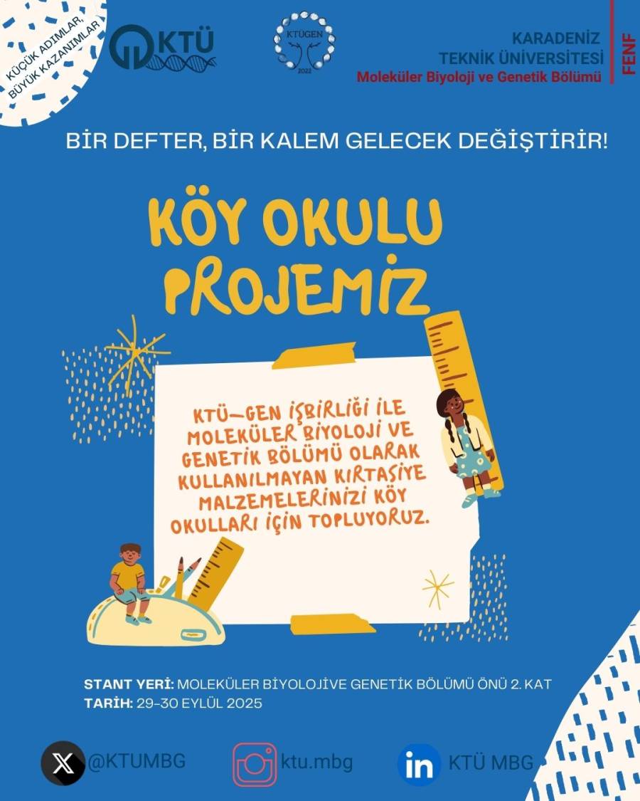 Bölümümüzün ilk sosyal sorumluluk projesi olan “Küçük Adımlar, Büyük Kazanımlar” temalı köy okulu projesi kapsamında, öğrencilerimize destek olmak için kırtasiye malzemeleri topluyoruz.