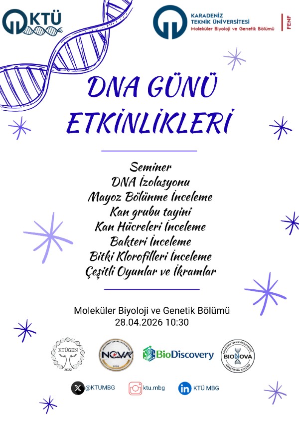 Yeni başlayan Moleküler Biyoloji ve Genetik Bölümü öğrencileri için 11 Ekim 2024 tarihinde saat 10:00 da Fen Fakültesi Nazım Terzioğlu Amfisinde önlük giyme töreni gerçekleştirilecektir.