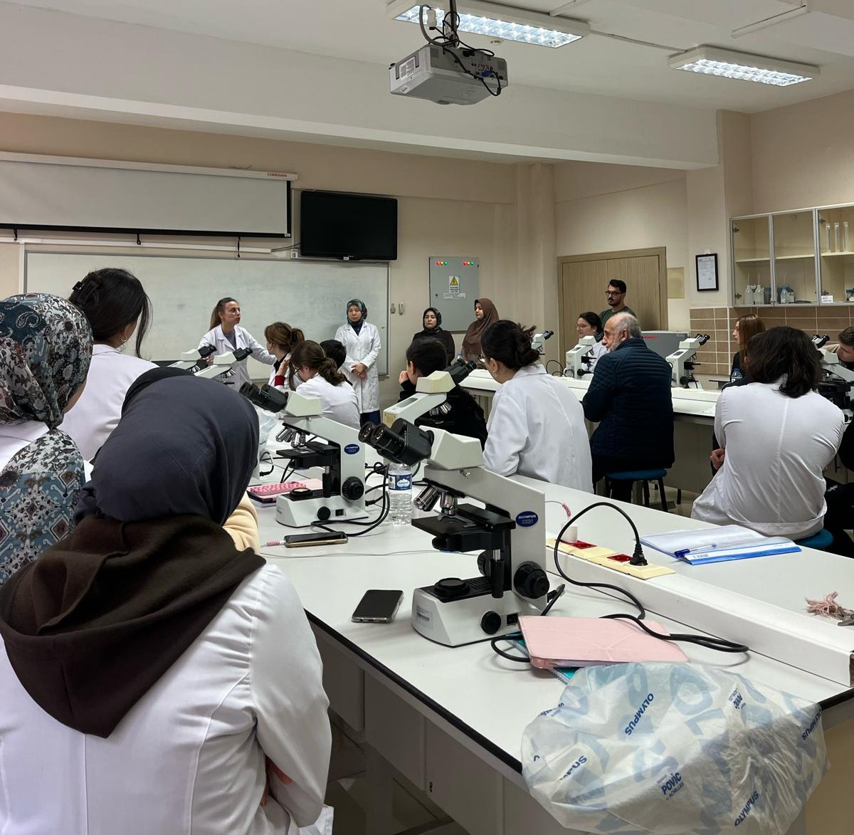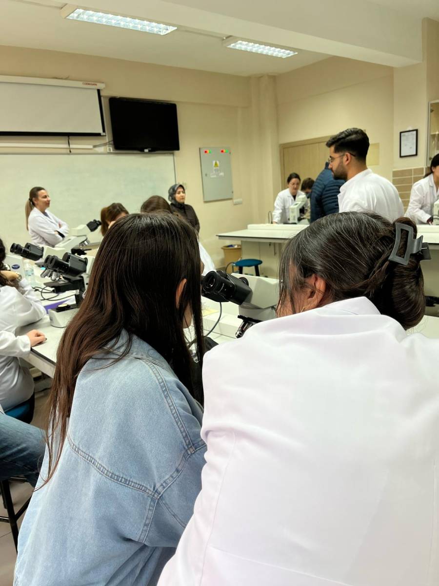 Bölümümüz 3. sınıf öğrencilerinin desteğiyle mikroskop kullanımı ve temel deneysel uygulamaların yer aldığı uygulamalı bir laboratuvar çalışması gerçekleştirildi. Katılımcılar bu etkinlikte bilimsel çalışma ortamını deneyimleme ve laboratuvar uygulamalarını yakından gözlemleme fırsatı buldu.