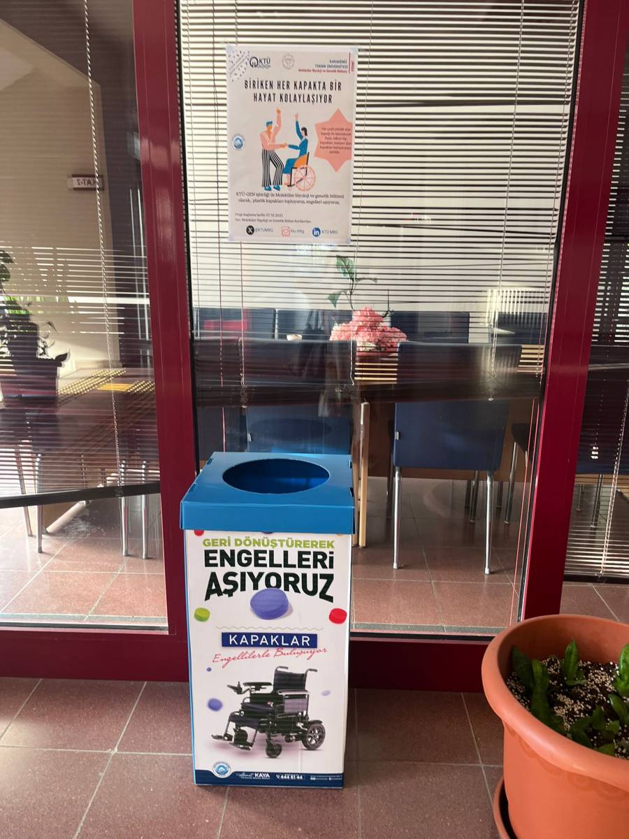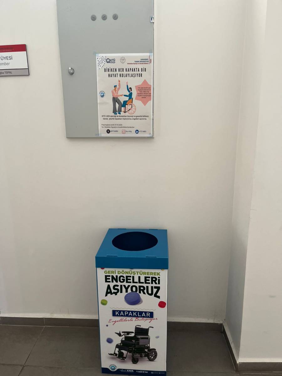 Proje sürecinde kapak toplama kutuları Trabzon Ortahisar Belediyesi’nden temin edilerek bölümümüzde belirli bölgelere yerleştirildi. Toplanan kapaklar belirli periyotlarla belediyeye teslim edilecek, belediye ise bu kapakları ilgili derneğe ulaştıracak.