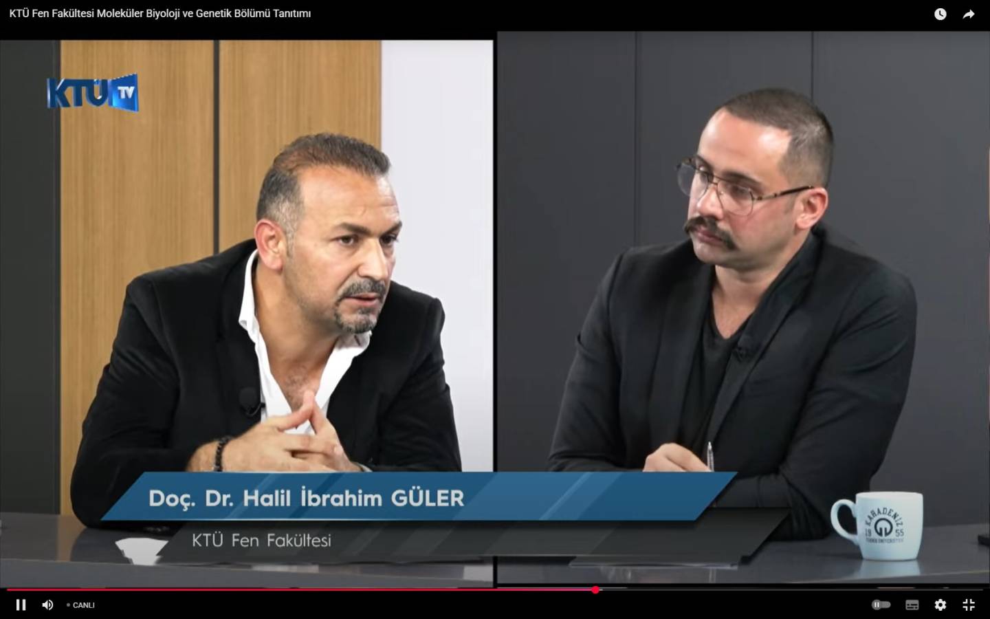 Karadeniz Teknik Üniversitesi (KTÜ) Fen Fakültesi Moleküler Biyoloji ve Genetik (MBG) Bölüm Başkanı Prof. Dr. Nevzat Batan ve Bölüm Başkan Yardımcısı Doç. Dr. Halil İbrahim Güler, KTU TV’nin konuğu oldu. Programda; bölümün akademik yapısı, eğitim-öğretim faaliyetleri, bölümün vizyonu, bilimsel araştırma altyapısı, öğrencilere sunulan imkânlar, öğrenci projeleri ve kariyer olanakları hakkında kapsamlı bilgiler paylaşıldı. KTÜ MBG Bölümü’nün hem ulusal hem de uluslararası düzeyde bilimsel çalışmalara katkı sunduğunu belirten öğretim üyeleri, geleceğin bilim insanlarını yetiştirme misyonuyla hareket ettiklerini vurguladı. KTU TV youtube hesabında yayınlanan program, öğrenci adaylarına ve kamuoyuna bölümün sunduğu eğitim, araştırma ve kariyer fırsatlarını yakından tanıma imkânı sağladı.