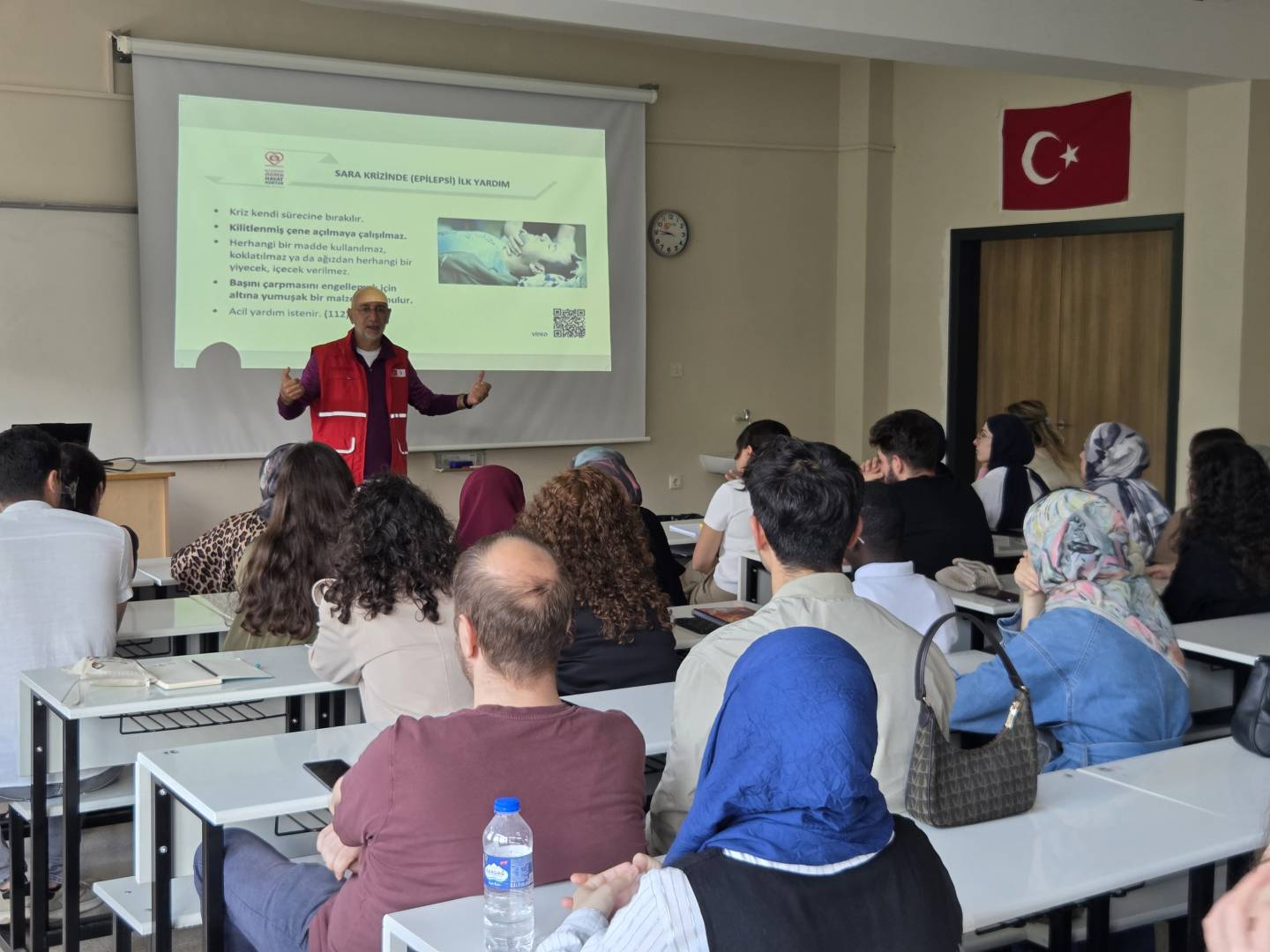 Eğitim süresince katılımcılar, ilk yardımın temel prensipleri hakkında teorik bilgi edinmenin yanı sıra uygulamalı çalışmalar yaparak pratik becerilerini geliştirme fırsatı buldular. Böylece, hem akademik yaşamda hem de günlük hayatta karşılaşılabilecek acil durumlara karşı bilinçli ve doğru müdahale etmenin önemi bir kez daha vurgulandı.