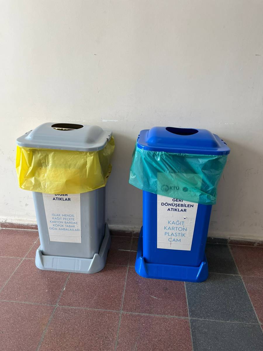 Bölümümüze, çevre bilincini artırmak ve kaynakların verimli kullanılmasını sağlamak amacıyla geri dönüşüm kutuları yerleştirilmiştir. Bu uygulama ile kâğıt, plastik, cam ve metal gibi geri dönüştürülebilir atıkların ayrı toplanması sağlanarak, hem doğal kaynakların korunması hem de çevresel sürdürülebilirliğe katkıda bulunulması hedeflenmektedir.