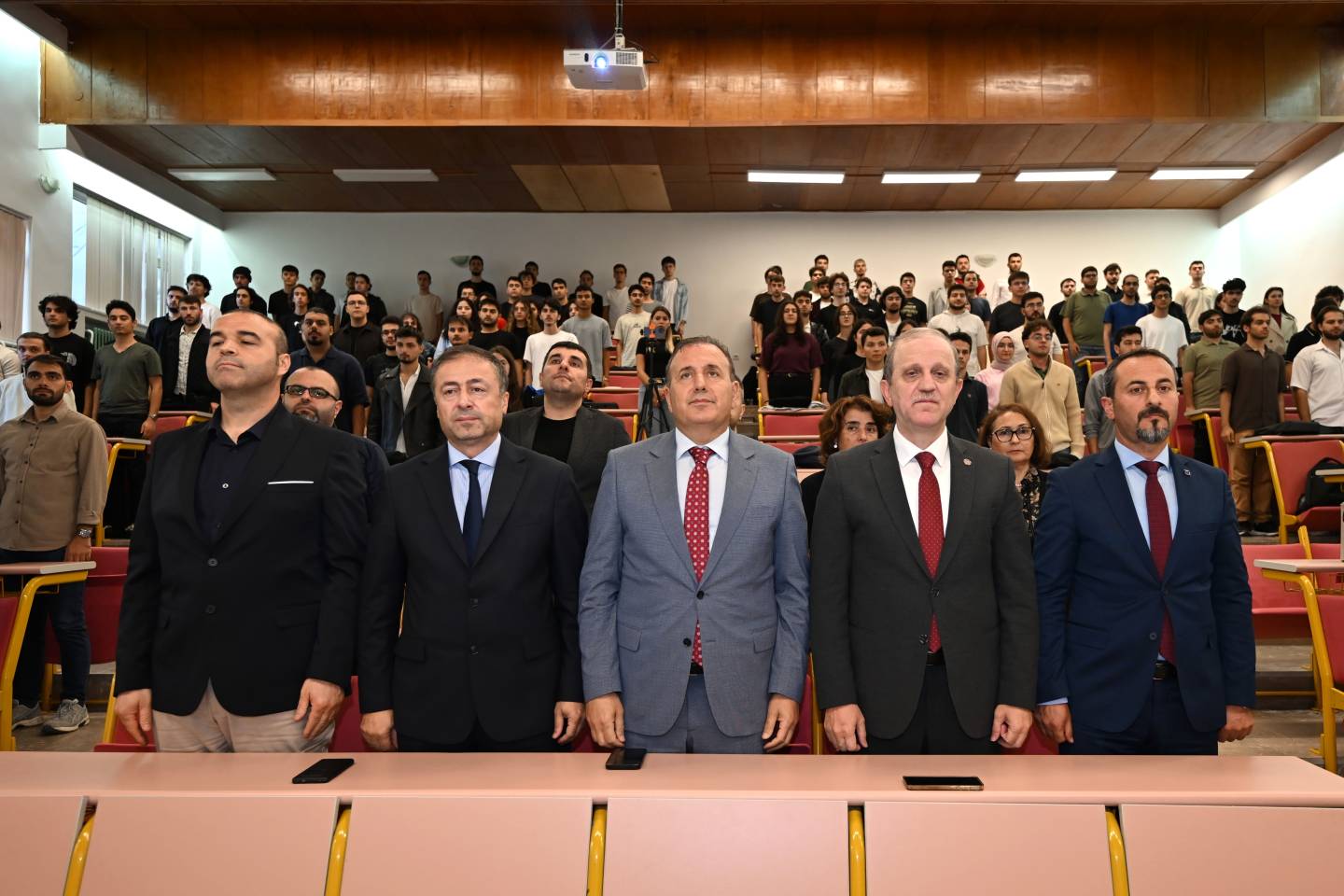 Dekanımız Prof. Dr. Temel VAROL, törende öğrencilere seslenerek “Fakültemizin en köklü ve saygın bölümlerinden biri olan Makine Mühendisliği’ni kazanan öğrencilerimizi yürekten tebrik ediyorum. Artık 500’e yakın akademik ve idari personeliyle güçlü bir ailenin parçasısınız. Hiçbirimiz bu sıralara mühendis olarak oturmadık; ancak sabır, azim ve rehberlikle hepimiz mühendis olarak mezun olduk. Sizler yalnızca bir meslek edinmeye değil, insan yaşamını kolaylaştıran ve teknolojiyi ileriye taşıyan bir vizyonun parçası olmaya adım atıyorsunuz. Unutmayın, burada atacağınız her adım yarının teknolojisine değerli bir katkı sağlayacaktır. Makine Mühendisliği öğrencilerimiz, TEKNOFEST’ten TÜBİTAK projelerine kadar birçok platformda başarıyla yer alıyor. Sizler de bu geleneği daha ileriye taşıyacaksınız.” mesajını verdi.