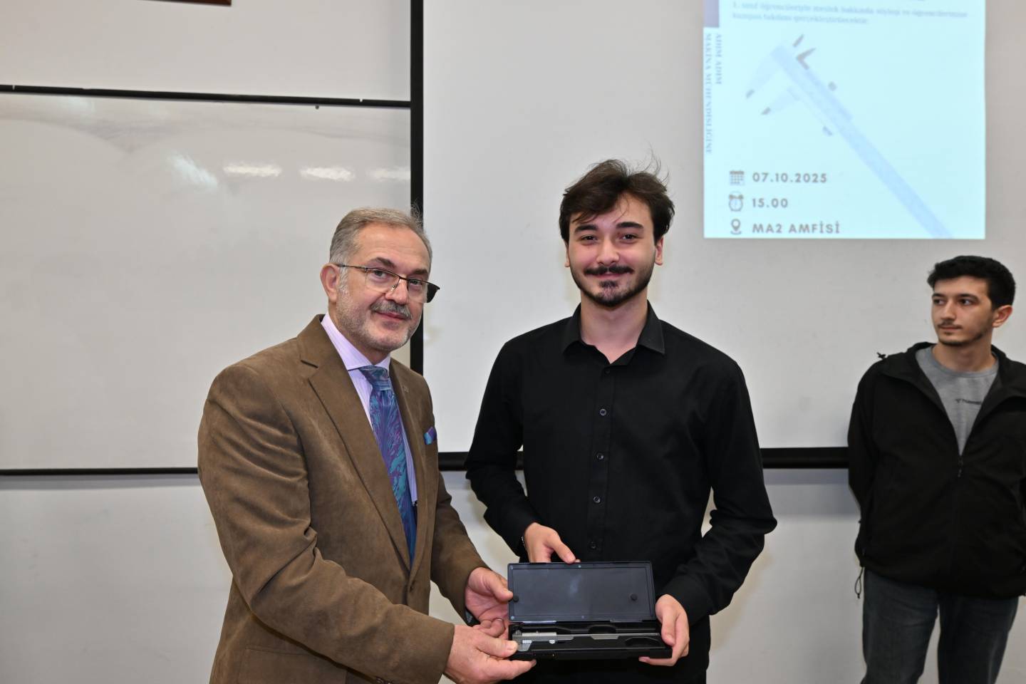 Etkinlik kapsamında 1. sınıf öğrencilerine, Makina Mühendisliği alanında temel araçlardan biri olan ‘kumpas’ takdim edildi. Tören, öğrencilerin mesleki eğitimlerini somut deneyimler ile pekiştirmelerine ve Mühendislik bilincini erken yaşta kazanmalarına katkı sağlamak amacıyla düzenlendi.