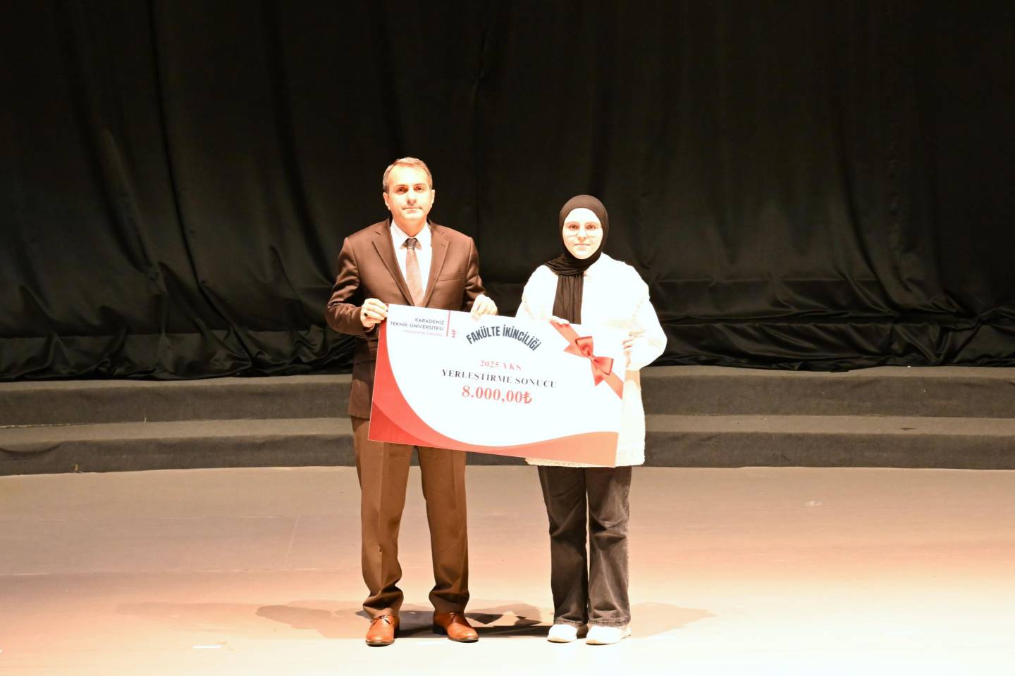 Fakülte genelinde YKS başarı sıralamasında ilk üçte yer alan öğrencilere ödülleri sırasıyla Rektörümüz Prof. Dr. Hamdullah ÇUVALCI, Rektör Yardımcımız Prof. Dr. Bünyamin ER ve Dekanımız Prof. Dr. Temel VAROL tarafından verildi.