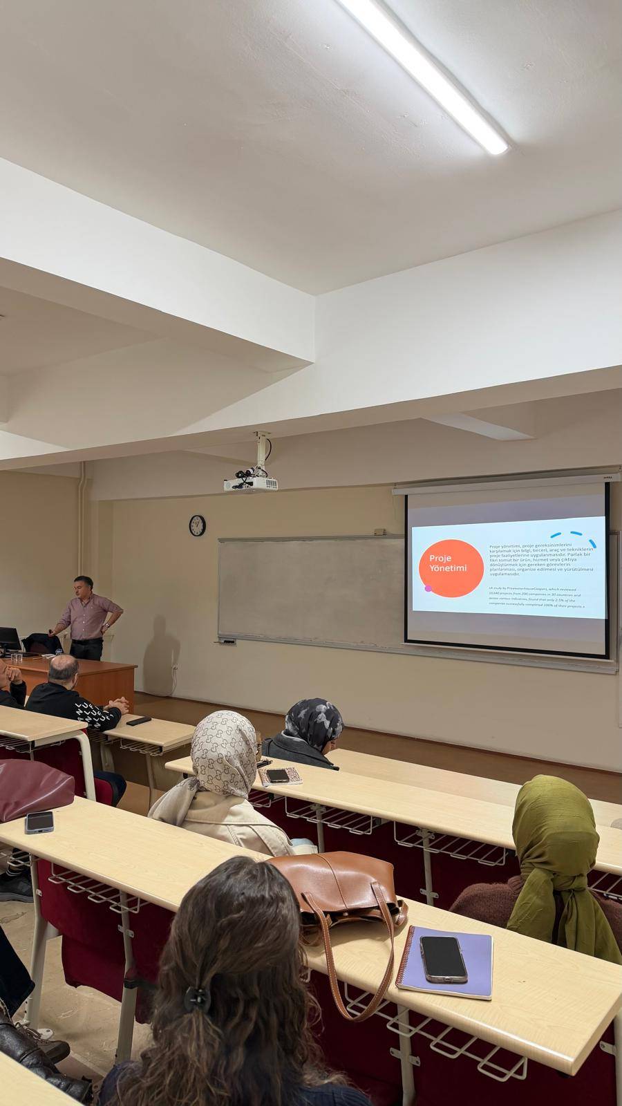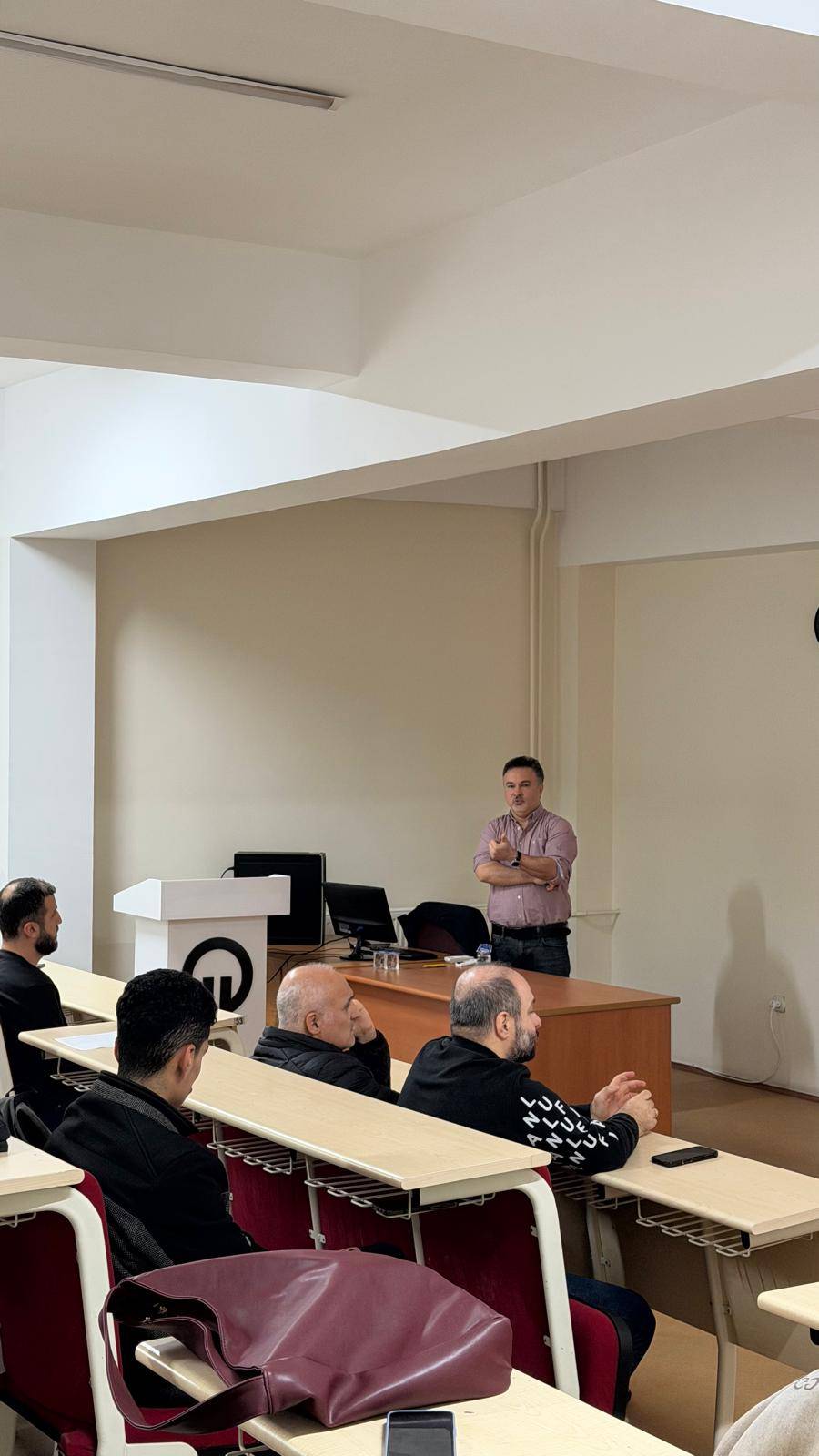Karayolu Proje dersine davetli olarak katılan İnşaat Mühendisi Mehmet Talat KARADENİZ Business Manager / Project Controls Manager olarak yer aldığı Kashagan Yapay Adalar projesi ile ilgili bir sunum gerçekleştirmiştir. Sunumda proje ile ilgili genel bilgi, projenin saha imalatları, firma organizasyon yapısı ve kontrol takımı hakkında önemli bilgiler aktarılmıştır.