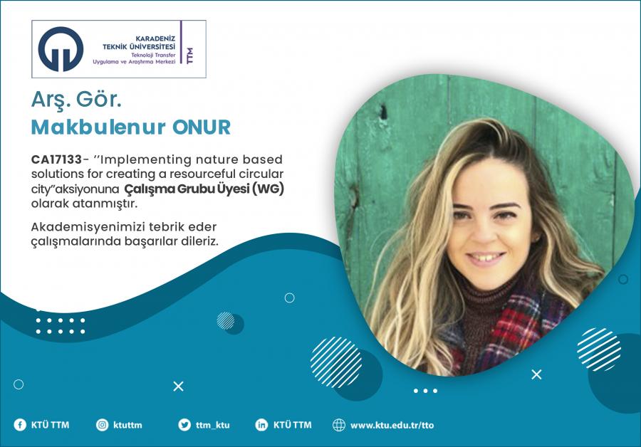 Fakültemiz Peyzaj Mimarlığı Bölümünde görevli Arş.Gör. MAKBULENUR ONUR, COST Programı’nın “CA17133 - Implementing nature based solutions for creating a resourceful circular city” aksiyona Çalışma Grubu Üyesi (WG) olarak atanmıştır.