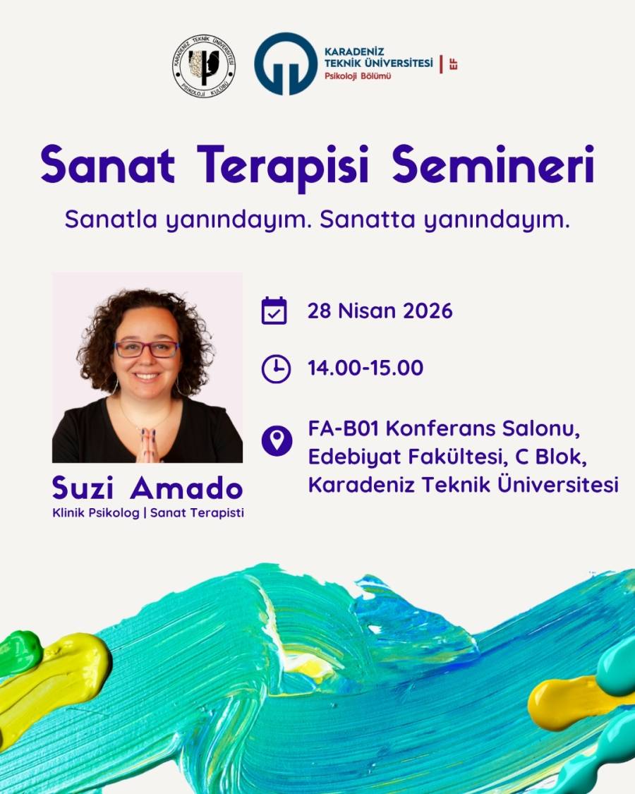 28.04.2026 tarihinde Klinik Psikolog ve Sanat Terapisti Suzi Amado tarafından “Sanatla Yanındayım, Sanatta Yanındayım” başlıklı bir sanat terapisi semineri gerçekleştirilmiştir.