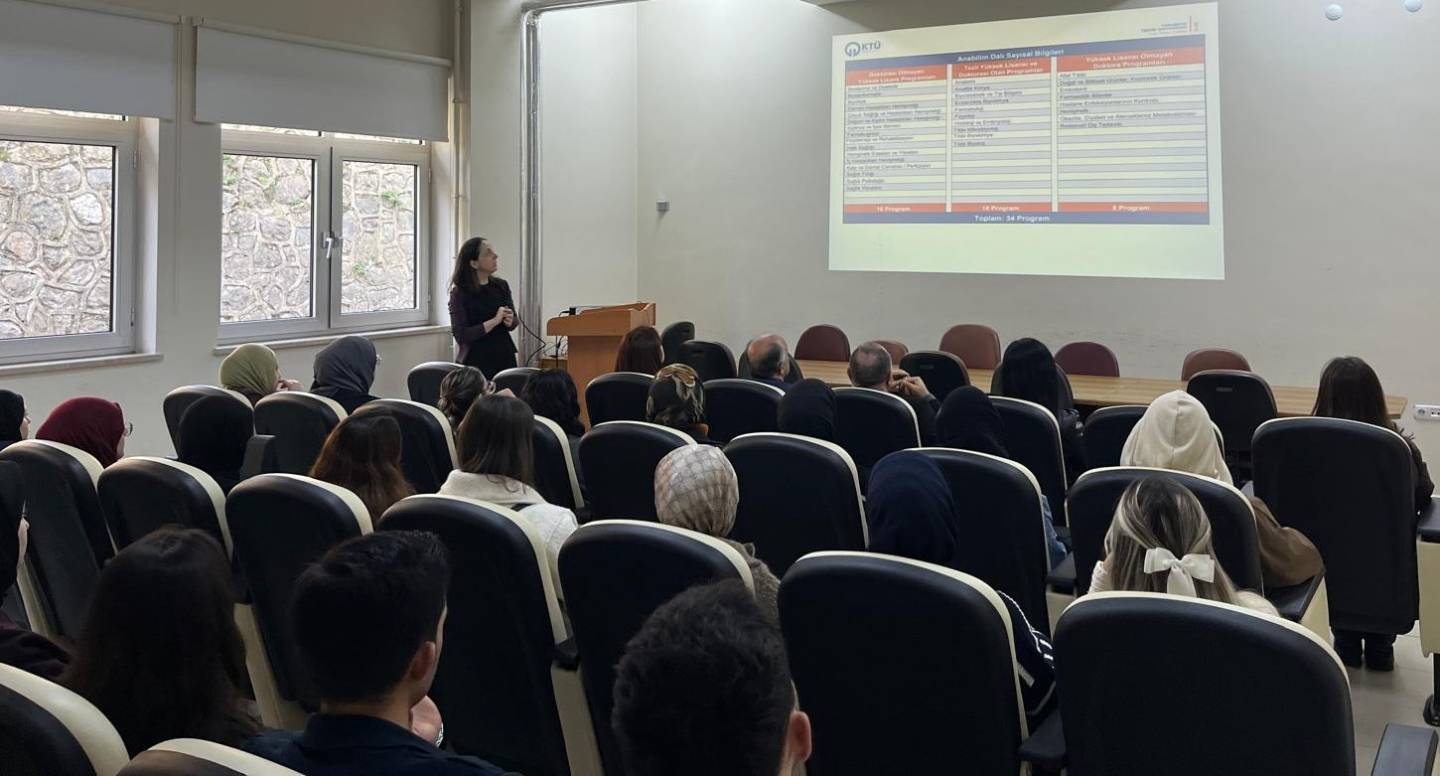 Tıp, Sağlık Bilimleri, Eczacılık, İktisadi İdari Bilimler, ve Edebiyat Fakülteleri ile Fen, Mühendislik, Of Teknoloji ve Sürmene Deniz Bilimleri Fakülteleri Lisans öğrencilerine yönelik "Lisansüstü Eğitimi Teşvik '' etkinliklerimiz Enstitü Müdür Yardımcılarımız Prof. Dr. Selim DEMİR ve Doç. Dr. Aysel ÖZSABAN'ın sunumları ile 03-04 Aralık 2025 tarihlerinde Sağlık Bilimleri Fakültesi Toplantı Salonunda ve Fen Fakültesi Nazım Terzioğlu Amfisi'nde gerçeklerştirildi.
