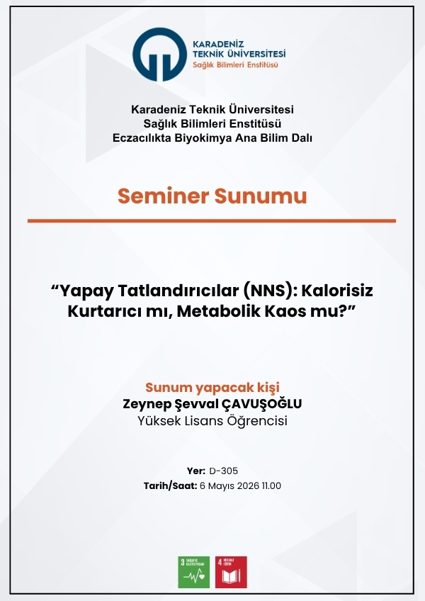 Enstitümüz Lisansüstü Seminer Programı kapsamında, Yüksek Lisans öğrencimiz Özlem GÜZELDAL, "Lipid Peroksidasyonu ve Ferroptozis" başlıklı sunumunu gerçekleştirecektir.