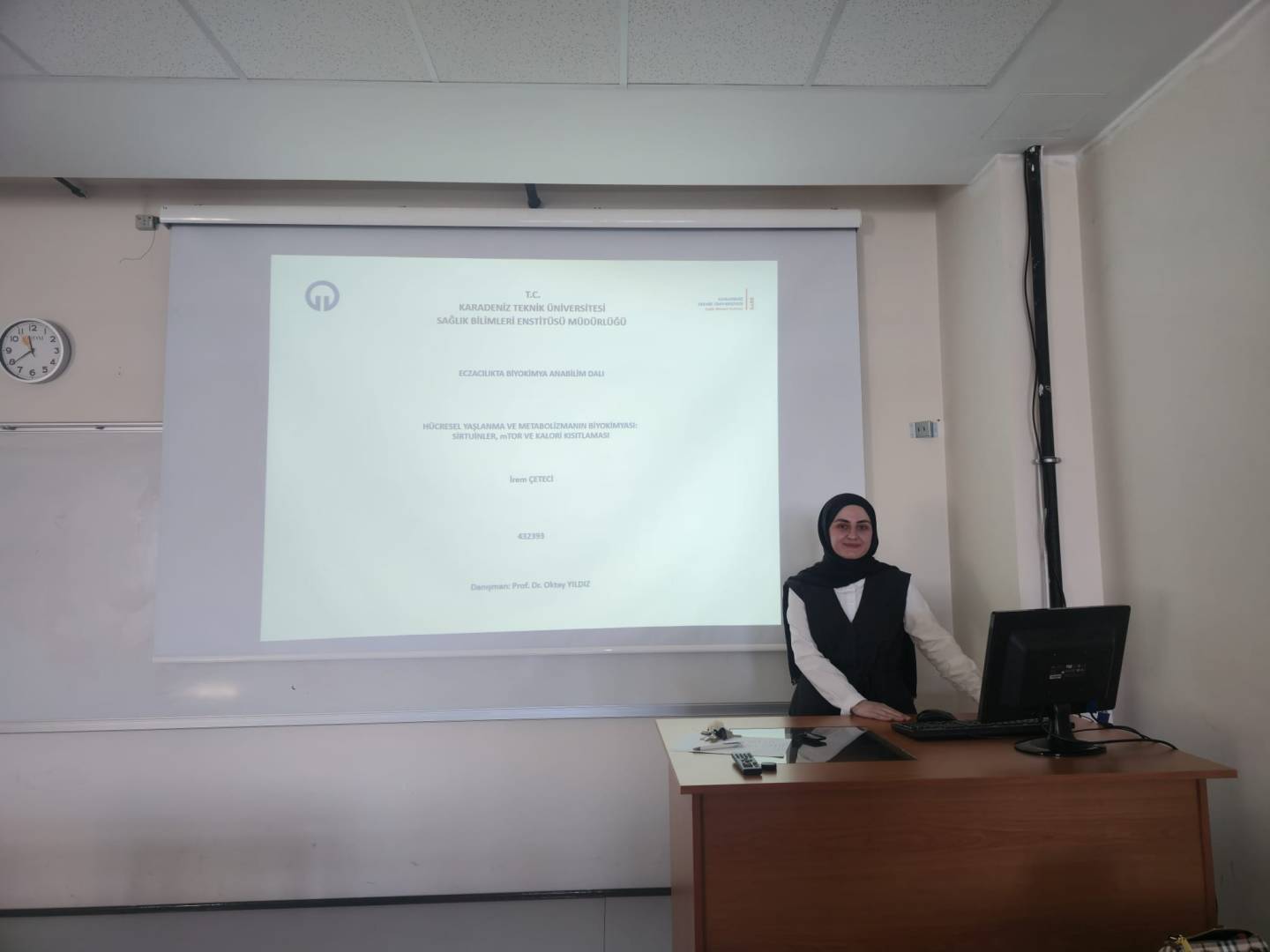 Eczacılıkta Biyokimya Ana Bilim Dalı yüksek lisans öğrencisi İrem ÇETECİ, "Hücresel Yaşlanma ve Metabolizmanın Biyokimyası: Sirtuinler, mTOR ve Kalori Kısıtlaması" konulu seminer sunumunu gerçekleştirdi.
