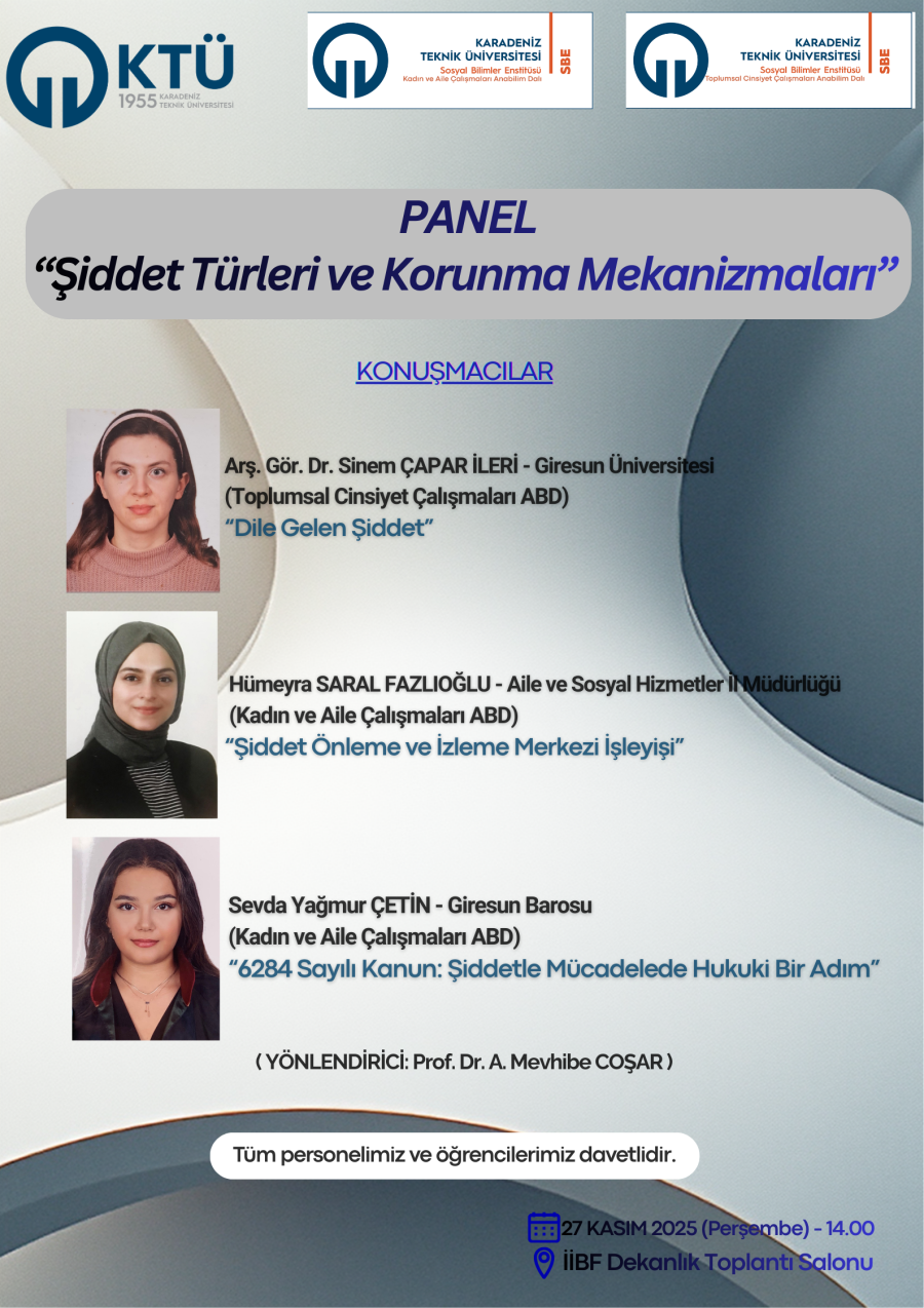 27 Kasım 2025 Perşembe Günü saat 14.00’te düzenlenecek Panel'e tüm personelimiz ve öğrencilerimiz davetlidir.