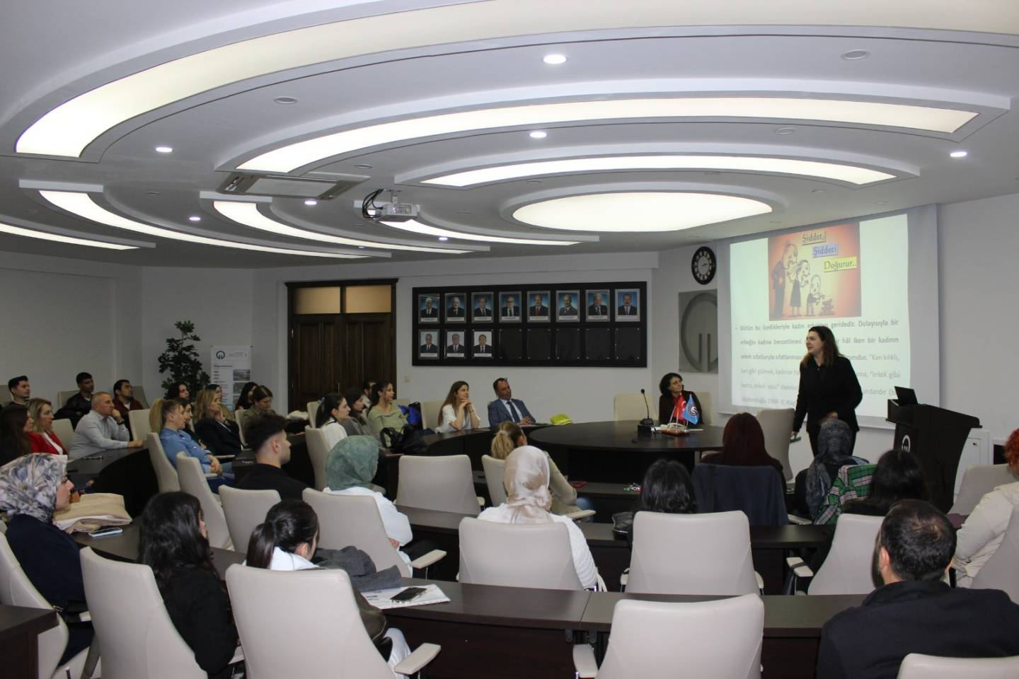 İktisadi ve İdari Bilimler Fakültesi Toplantı Salonu’nunda düzenlenen Panelde Prof. Dr.Mevhibe COŞAR’ın yönlendiriciliğinde Giresun Üniversitesinden Araş. Gör. Dr. Sinem ÇAPAR İLERİ “Dile Gelen Şiddet”, Aile ve Sosyal Hizmetler İl Müdürlüğünden Hümeyra SARAL FAZLIOĞLU “Şiddet Önleme ve İzleme Merkezi İşleyişi” ve Giresun Barosu avukatlarından Sevda Yağmur ÇETİN de “6284 Sayılı Kanun: Şiddetle Mücadelede Hukuki Bir Adım” konulu sunumlarını yapmışlardır.