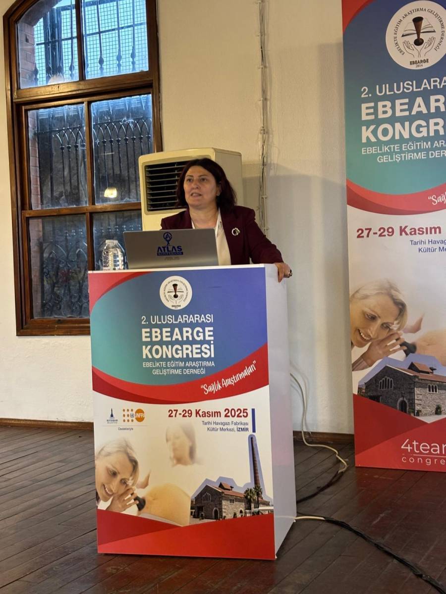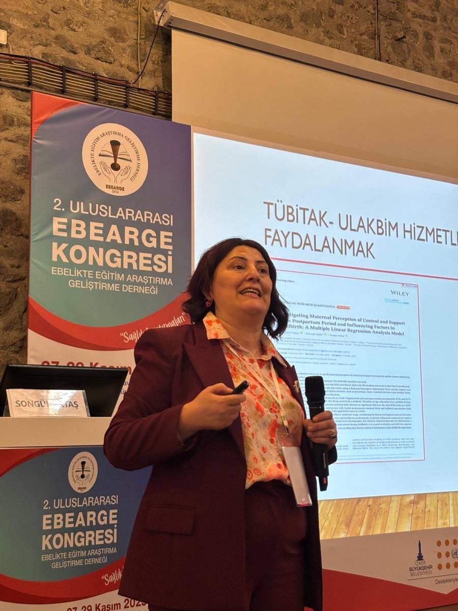 Ebelik Bölüm Başkanı Prof. Dr. Songül AKTAŞ, Ebelikte Eğitim, Araştırma Geliştirme Derneği (EBEARGE) tarafından, 27-29 Kasım 2025 tarihleri arasında İzmir’de yüz yüze düzenlenen 2. Uluslararası EBEARGE kongresi’ne “davetli konuşmacı” olarak katıldı. Kongrenin ana teması SAĞLIK ARAŞTIRMALARI olup, Prof. Dr. Songül AKTAŞ, “BİLİMSEL MAKALE YAYINLAMA STRATEJİLERİ” konusunda konuşma yapmıştır. AKTAŞ konuşmasını, “bilimsel makale yazımı, yazılan makalelerin yayınlanma stratejileri (araştırma konusuna göre dergi seçimi, dergilerin özel sayısı, dergilerin Q değerleri, dergilerin görünürlüğü (açık erişim vb), kurumsal ve ulusal araştırma destekleri vb), yayınlanan makalelerin görünürlüğünü artırma ve ebelik alanında araştırma kalitesini daha da artırma stratejileri konularında” temellendirdi. Prof. Dr. Songül AKTAŞ konuşmasında, araştırma üniversitesi olan Karadeniz Teknik Üniversitesi ve diğer üniversitelerin; oku&yayım, teşvik desteği gibi yayın destek politikaları konusunda da bilgi sundu. Kongreye ebelik alanında klinisyen, akademisyen ve öğrenci ebelerle birlikte; hekim, hemşire gibi sağlık profesyonelleri katılmıştır.