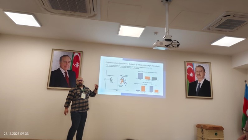 Bölümümüz öğretim üyelerinden Dr. Öğr. Üyesi Mehmet Kemal, 21-23 Kasım tarihleri arasında Bakü, Azerbaycan'da düzenlenen 3. Uluslararası Apiterapi ve Doğa Kongresi’ne (IANCO) katılım sağlamıştır. Kongre organizasyonunda 'Düzenleme Kurulu Üyesi' olarak görev alan hocamız, aynı zamanda online sunumlar oturum başkanlığı görevini de yürütmüştür. Dr. Öğr. Üyesi Mehmet Kemal, kongrede 'Effects of Propolis on Obesity: A Review of Potential Mechanisms and Therapeutic Use' başlıklı çalışmasını sözlü bildiri olarak başarıyla sunmuştur. Hocamızı tebrik eder, başarılarının devamını dileriz.