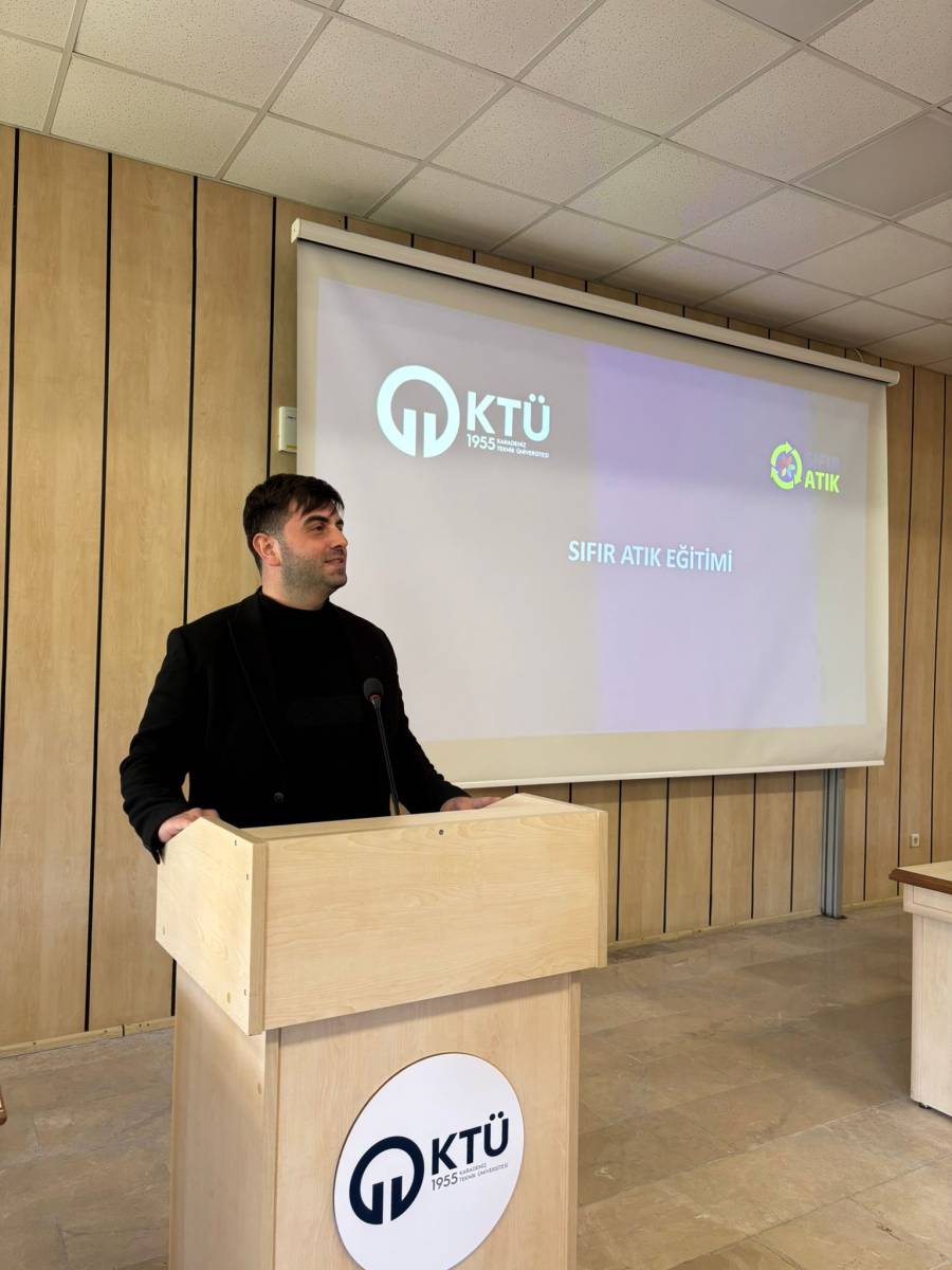 KTÜ Sıfır Atık Koordinatörlüğü tarafından düzenlenen eğitimlerde, Çevre Mühendisi Hasan Ateş rehberliğinde 450 öğrenciye sıfır atık bilinci kazandırılmıştır.