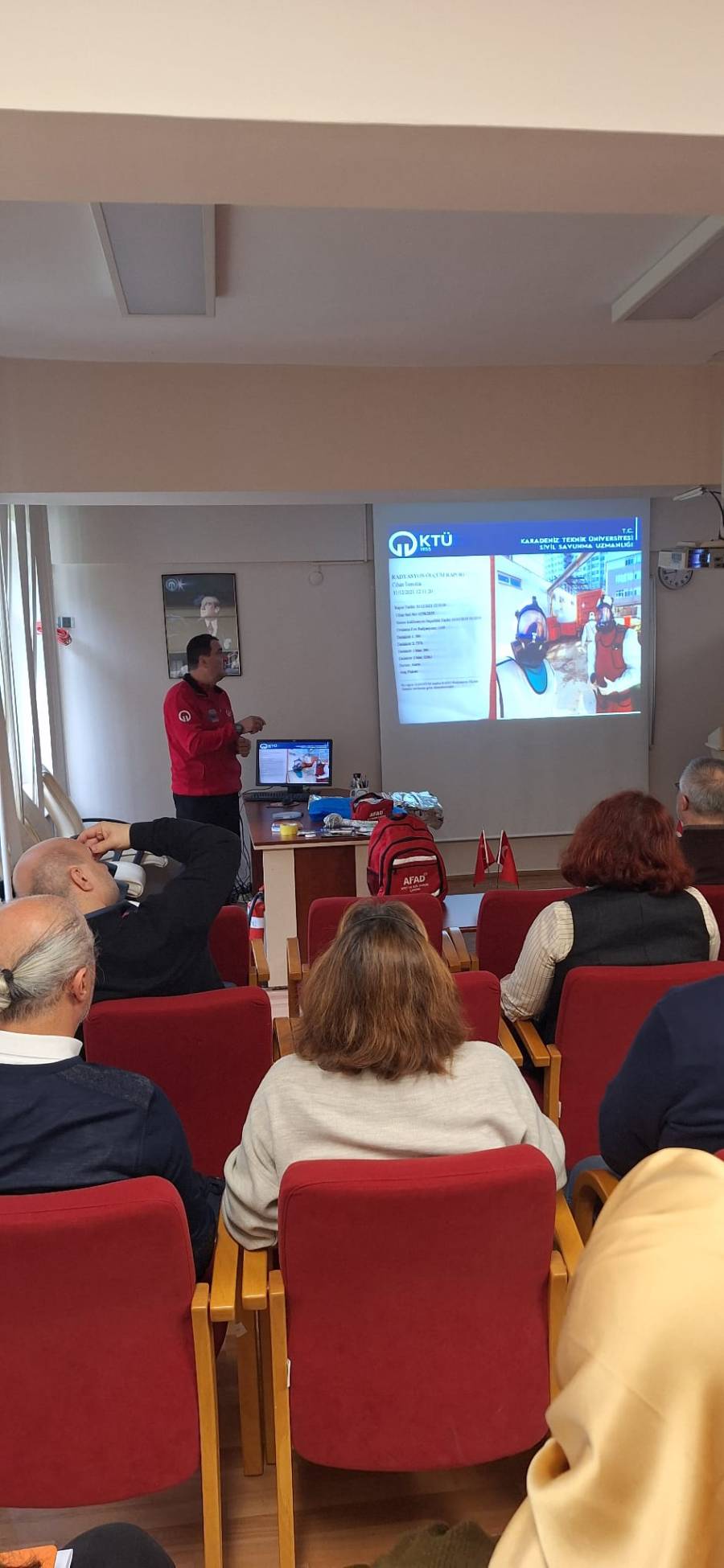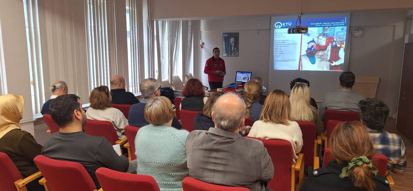 "İlk Yardım Hayat Kurtarır" etkinliğinde Ömer YETİM, temel ilk yardım ve yaşam desteği konularında katılımcılara önemli bilgiler aktardı.