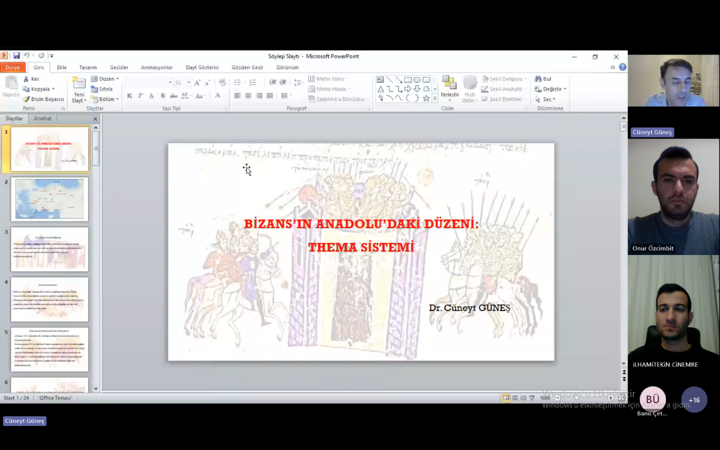 KTÜ Tarih Bölümü Çevrimiçi Seminer Programı kapsamında  Dr. Cüneyt GÜNEŞ "Bizans'ın Anadolu'daki Düzeni: Thema Sistemi"  başlıklı konferansıyla 06.03.2024 tarihinde saat 20.00'de gerçekleştirilmiştir.