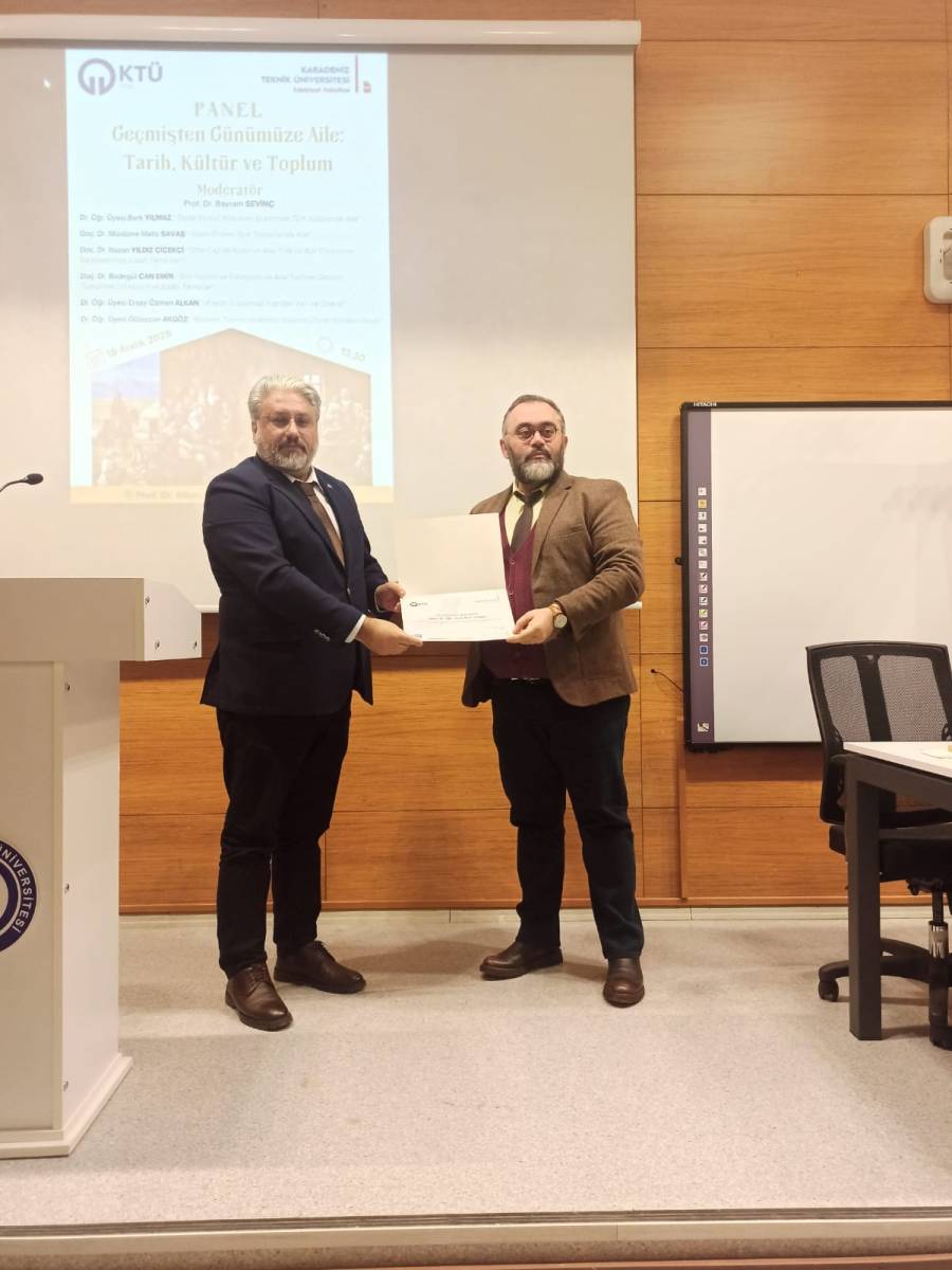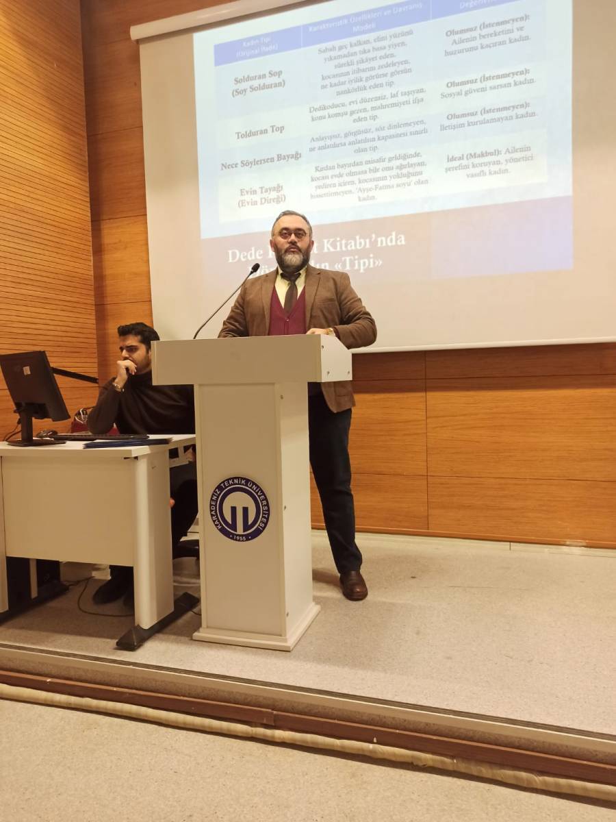 Bölümümüz öğretim üyesi Dr. Berk Yılmaz'ın ''Dede Korkut Hikayeleri Ekseninde Türk Kültüründe Aile'' başlıklı konuşmasını gerçekleştireceği ''Geçmişten Günümüze Aile: Tarih, Kültür ve Toplum'' başlıklı panel, 18.12.2025 saat 13.30'da Hikmet Öksüz Amfisi'nde gerçekleştirilmiştir.