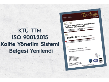 KTÜ TTM, ISO 9001: 2015 Kalite Yönetim Sistemi Belgesi Yenilendi