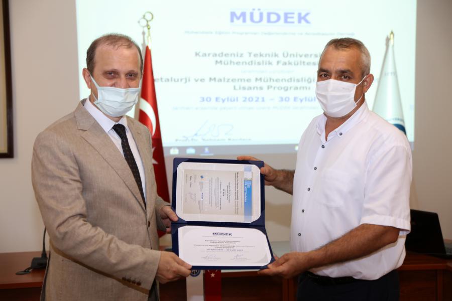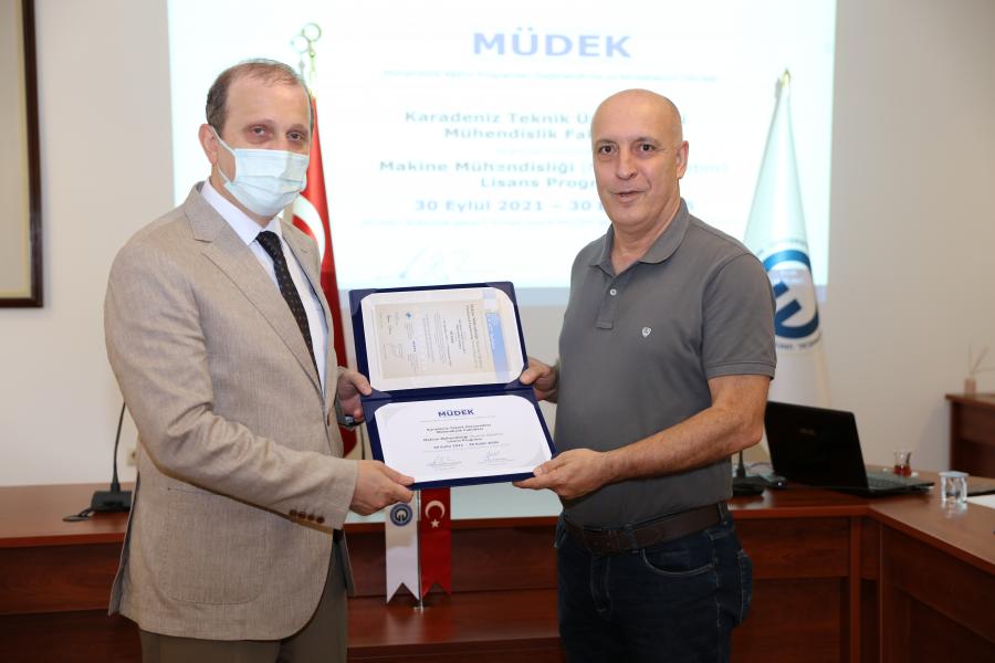 Üniversitemiz Mühendislik Fakültesi bünyesinde yer alan bölümlere ait programlar için Mühendislik Eğitim Programları Değerlendirme ve Akreditasyon Derneği (MÜDEK) tarafından değerlendirme ve akreditasyon çalışmaları gerçekleştirilmektedir. Bu saikle Üniversitemiz Mühendislik Fakültesi; Bilgisayar, Elektrik-Elektronik, Endüstri, Harita, İnşaat, Jeofizik, Jeoloji, Maden, Makine, Metalurji ve Malzeme Mühendisliği Bölümleri adına akreditasyon başvuru ve değerlendirme süreci boyunca aktif rol alan personelimize, Rektörümüz Prof. Dr. Hamdullah ÇUVALCI başkanlığında, Rektörlük Senato Salonu’nda düzenlenen bir törenle teşekkür belgeleri takdim edildi. Törene, Rektör Yardımcılarımız; Prof. Dr. Akif CİNEL, Prof. Dr. Halil İbrahim OKUMUŞ ve Prof. Dr. Cemil RAKICI da iştirak etti.