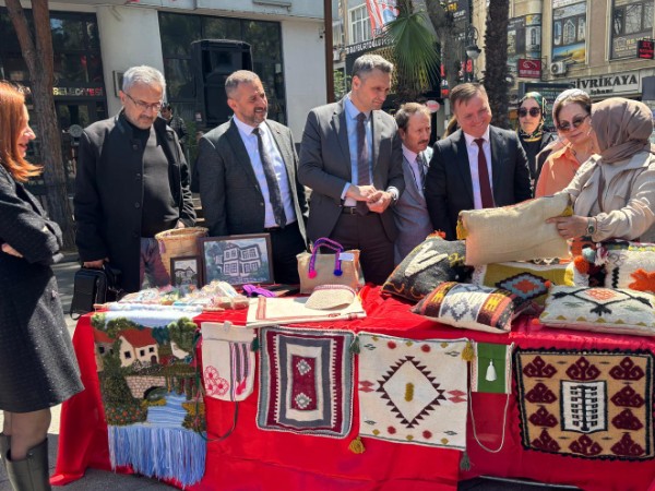 Akçaabat Belediyesi Turizm Haftası etkinliğinde, El Sanatları Bölümü öğrencilerinin dokuma ürünleri sergilendi; ziyaretçilere el dokumaları hakkında bilgi verildi.