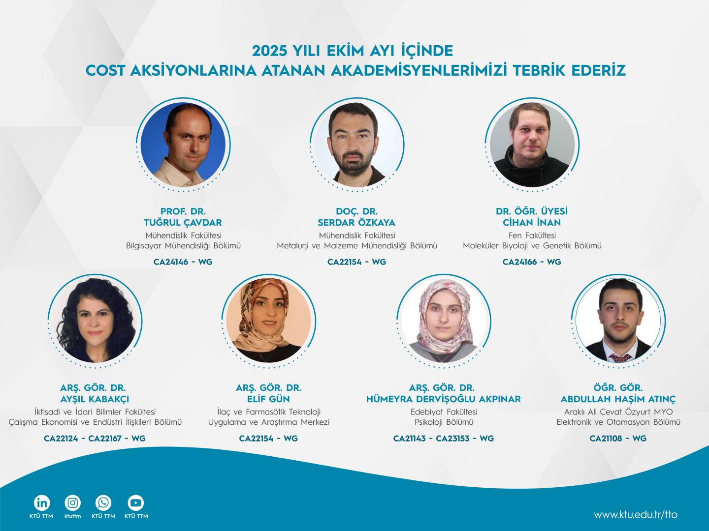 2025 yılı Ekim ayı içinde COST Aksiyonuna atanan araştırmacılarımızı tebrik eder, aksiyondaki çalışmalarında başarılar dileriz.