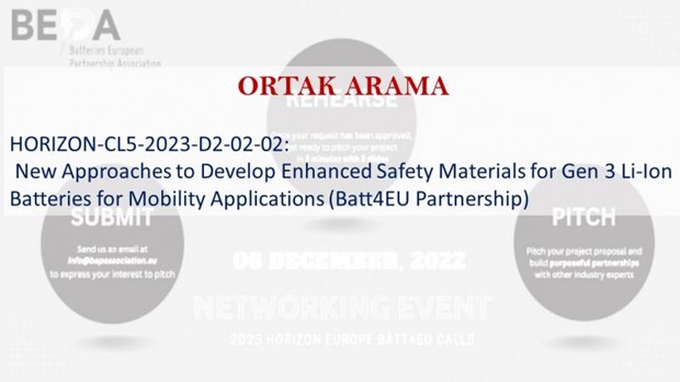 Ortak Arama- HORIZON-CL5-2023-D2-02-02: New Approaches to Develop Enhanced Safety Materials for Gen 3 Li-Ion Batteries for Mobility App
