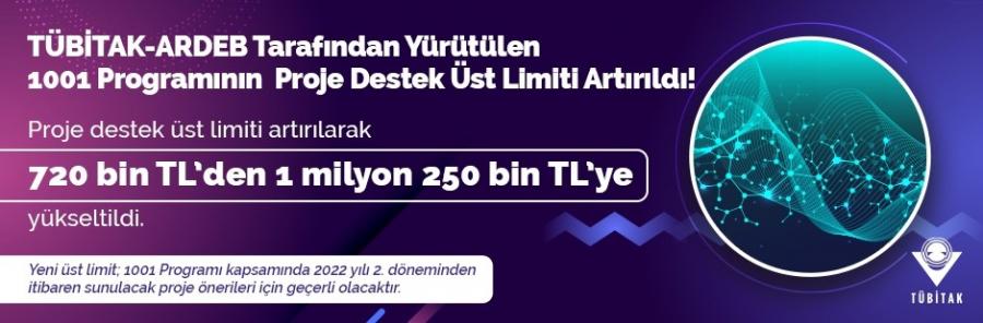 Yeni üst limit; 1001 Programı kapsamında 2022 yılı 2. döneminden itibaren sunulacak proje önerileri için geçerli olacaktır.