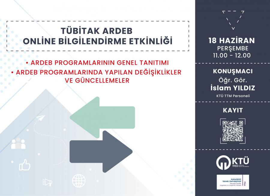 TÜBİTAK ARDEB programları hakkında 18 Haziran 2020 tarihinde 11.00-12.00 saatleri arasında düzenlenecek olan online bilgilendirme etkinliğine davetlisiniz.
