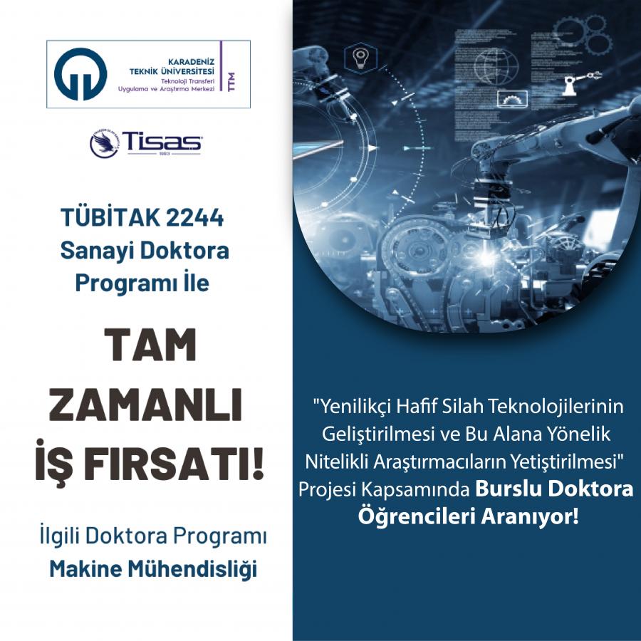 Karadeniz Teknik Üniversitesi ve Trabzon Silah Sanayi A.Ş., TÜBİTAKın 2244 Sanayi Doktora Programı Kapsamında Tam Motive Doktora Öğrencileri Arıyor!