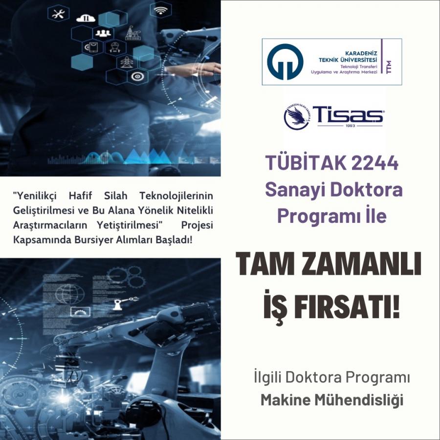 KTÜ-TİSAŞ Ortaklığında Yürütülen TÜBİTAK 2244 Sanayi Doktora Programı Kapsamında Bursiyer Alımlarında Son Dönem!
