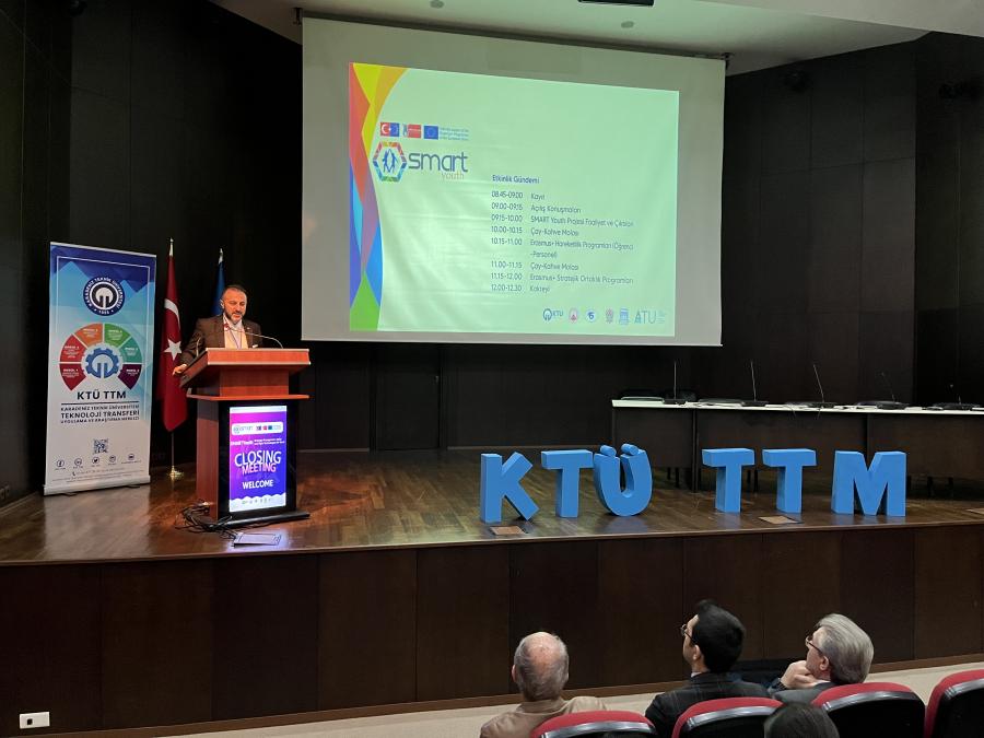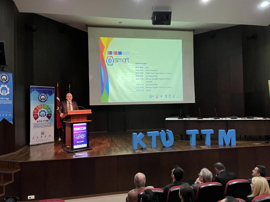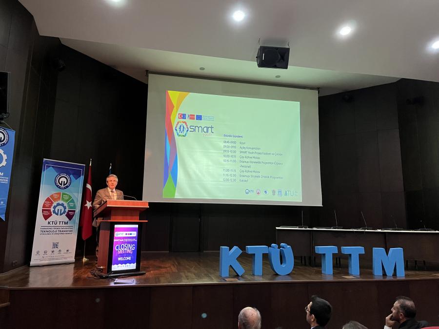 Karadeniz Teknik Üniversitesi’ni temsilen KTÜ Teknoloji Transferi Uygulama ve Araştırma Merkezinin proje yürütücülüğünü üstlendiği Erasmus+ Programı kapsamında Avrupa Komisyonu tarafından desteklenen “Strategic Management, Agility and Right Technologies for Youth - SMART Youth” Projesi "Çoğaltıcı Etkinliği ve Kapanış Toplantısı" KTÜ Osman Turan Kongre ve Kültür Merkezi'nde düzenlendi.