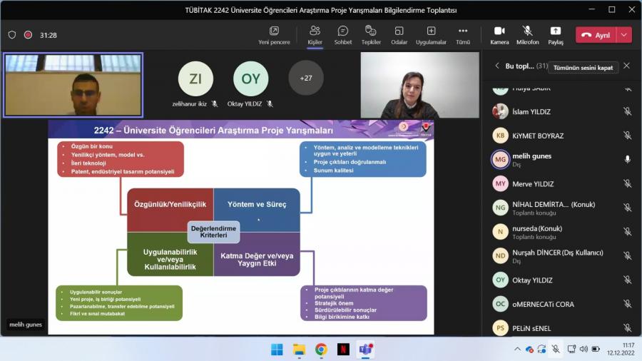 Üniversitemizde TÜBİTAK 2242 Üniversite Öğrencileri Araştırma Proje Yarışmaları Çevrim İçi Bilgilendirme Toplantısı Gerçekleştirildi