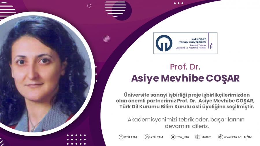 Üniversitemiz Edebiyat Fakültesi Türk Dili ve Edebiyatı Bölümü Öğretim Üyelerinden üniversite sanayi işbirliği proje işbirlikçilerimizden olan önemli partnerimiz Prof. Dr.  Asiye Mevhibe COŞAR,   Türk Dil Kurumu Bilim Kurulu aslî üyeliğine seçilmiştir. Kendisini tebrik eder, görevinde başarılar dileriz.