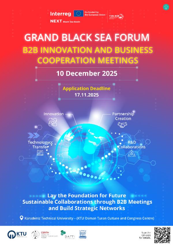 The T3N-BSB Project is a transnational cooperation initiative implemented under the “Interreg VI-B NEXT Black Sea Basin” Programme, part of the European Union’s Cohesion Policy. The project, carried out in partnership with Türkiye, Bulgaria, Greece, and Romania, aims to establish sustainable transnational networks in the Black Sea Basin and to enhance the research, innovation, and advanced technology adoption capacities of the participating countries.
