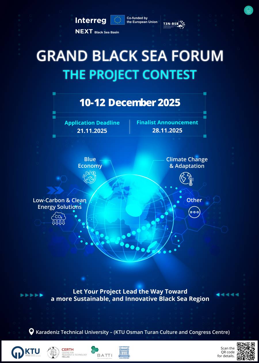 The Project Contest, organized as part of the GRAND BLACK SEA FORUM to be held in Trabzon between 10-12 December 2025, hosted by Karadeniz Technical University, invites students, researchers, entrepreneurs and innovative thinkers to present forward-looking solutions that address challenges in the Black Sea basin.