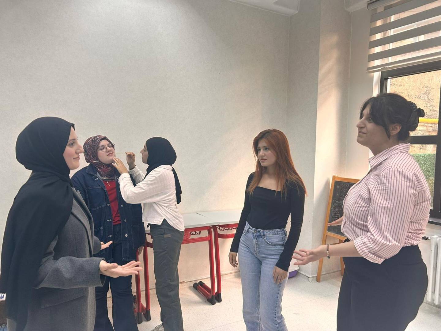 Öğr. Gör. Sinem ÇOL, Hemşirelik Bölümü 3. Sınıfta okumakta olan 20 öğrenci ile Hemşirelikte Akran Mentörlüğü çalışmaları kapsamında “Dilin İletişimdeki Gücü” adlı bir drama çalışması gerçekleştirdi.